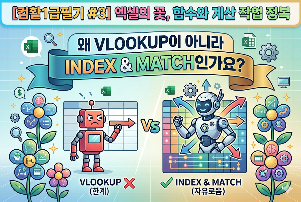 엑셀의 함수는 단순히 암기하는 대상이 아니라, 데이터를 다루는 '논리적 대화'입니다. 처음 INDEX와 MATCH를 접하면 겹겹이 쌓인 괄호와 인자값들에 머리가 아플 수도 있습니다. 하지만 한 번 그 원리를 깨닫고 수식을 입력했을 때, 거대한 데이터 속에서 내가 원하는 단 하나의 값이 정확히 튀어나오는 순간의 쾌감은 이루 말할 수 없습니다. 컴활 1급 자격증 취득은 물론, 실무에서도 여러분의 가치를 높여줄 이 강력한 도구를 포기하지 말고 끝까지 마스터하시길 바랍니다. 이 수식을 자유자재로 다루게 되는 순간, 여러분의 엑셀 라이프는 '노동'에서 '설계'로 바뀌게 될 것입니다. 여러분의 합격과 커리어 성장을 진심으로 응원합니다! 🎊